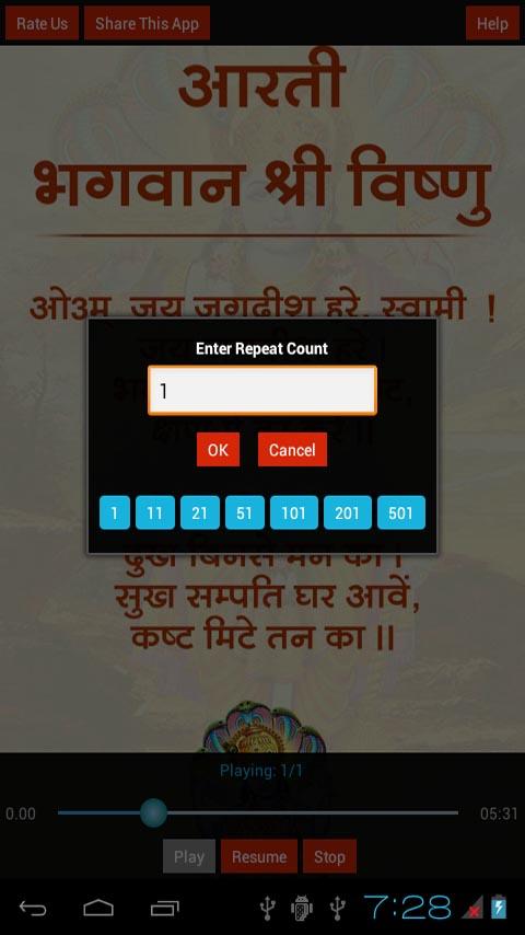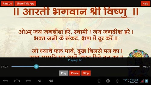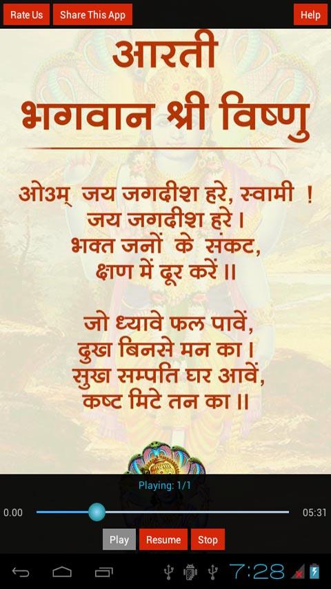 This Application contains Vishnu Aarti in Hindi Language with Audio.