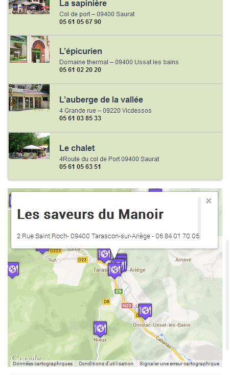 -La partie « où dormir » et « où manger » liste les hébergements et les restaurants du territoire localisés sur une carte afin de faciliter leur repérage.