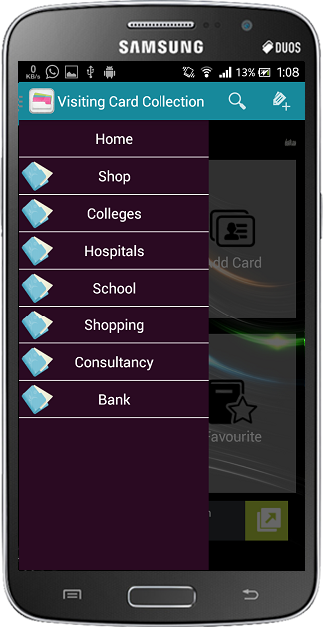 In this application we have included lots of feature to manage all visiting cards. You can categorize your visiting card by it’s manage visiting card function. If you want to view your visiting card in different way then we have provide two views flip view and full screen view. You can involve visiting card by using camera caption function and also involve by photo gallery. You can directly distribute your visiting card by sharing functionality. Search engine also included in these dairy to provide more flexibility to you.