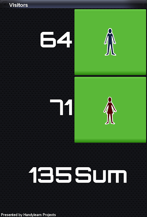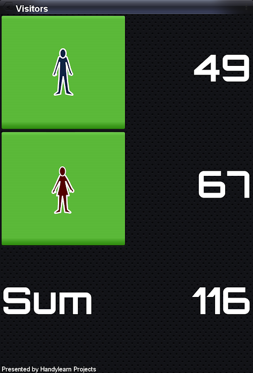 With this simple software you can count visitors at an event. It counts how often you press the buttons for men and women.