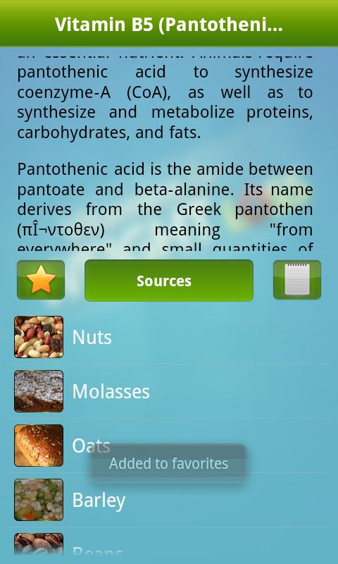- Nutritional chart for each source to help you plan your daily intake of vitamins