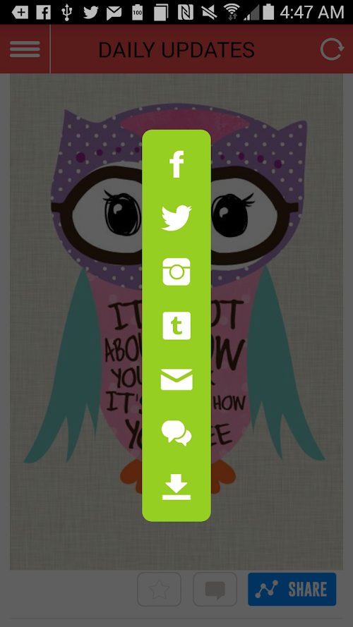 +Share on Facebook, Twitter, Instagram, Tumblr, SMS, Email and many more.