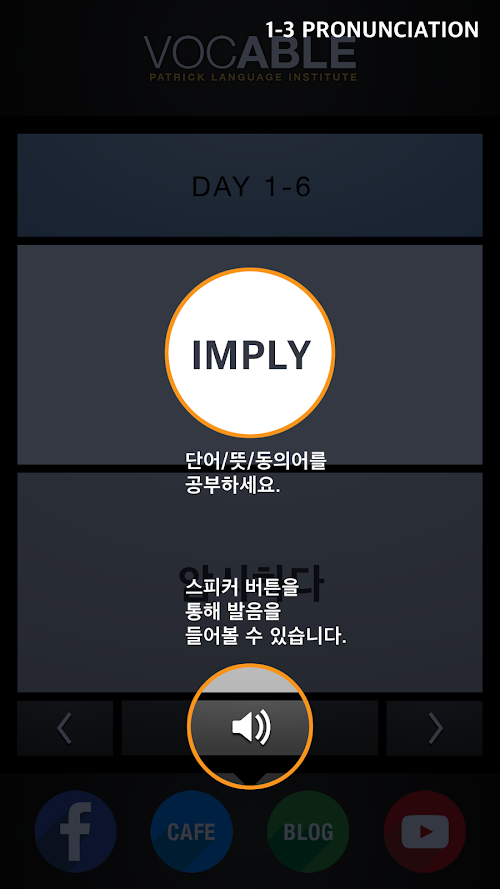 - Vocab 섹션에서는 스피커 버튼을 통해 발음이 지원 됩니다.