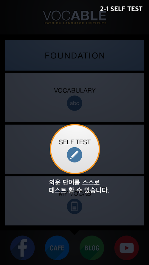 - 오늘 공부한 단어는 self test 에서 바로 확인 하실 수 있습니다.