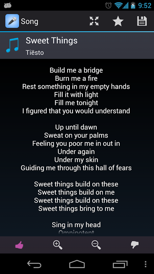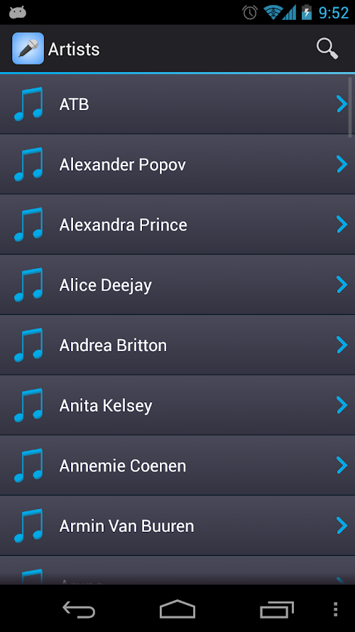 In this application you can find great number of Vocal Trance lyrics. This application does not contain audio or video. It only contains the lyrics, the title and the name of the artist.