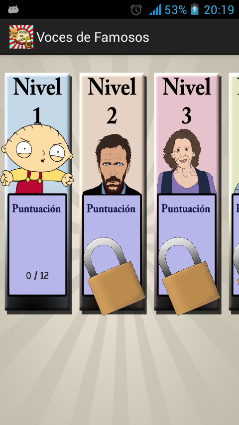 El juego consta de 10 niveles con 12 voces cada uno, para pasar de nivel tendrás que conseguir al menos 9 aciertos.