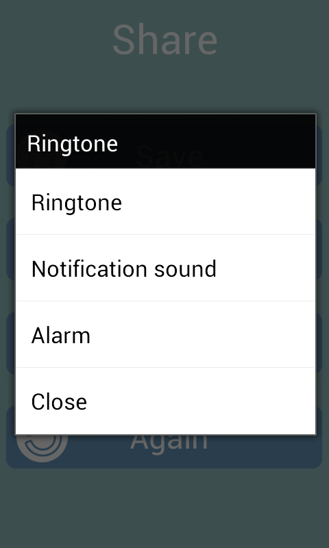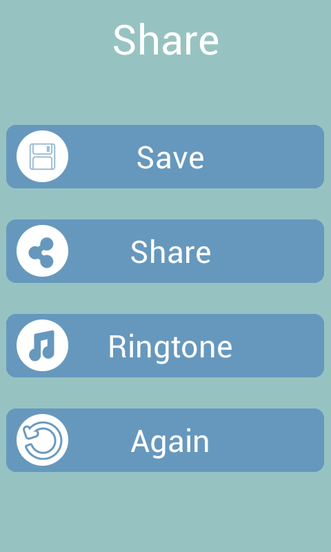 - Share audio (Whatsapp,Dropbox,Mail,Bluetooth, Viber etc.),