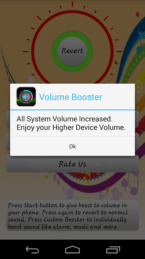 Volume Booster will make your phone sound and overall volume stronger by 35-45% depending on your device.