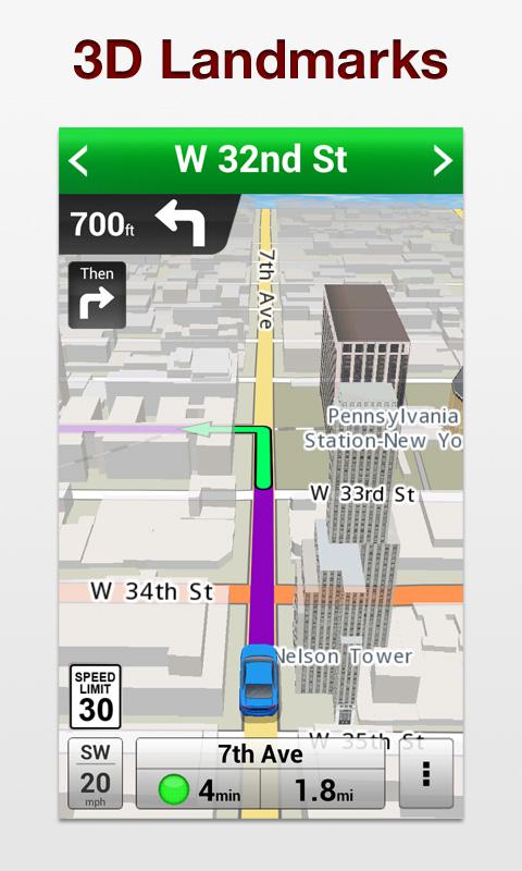 • Advanced 3D navigation instructions that use road features and landmarks such as traffic lights and number of streets