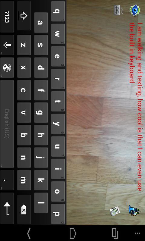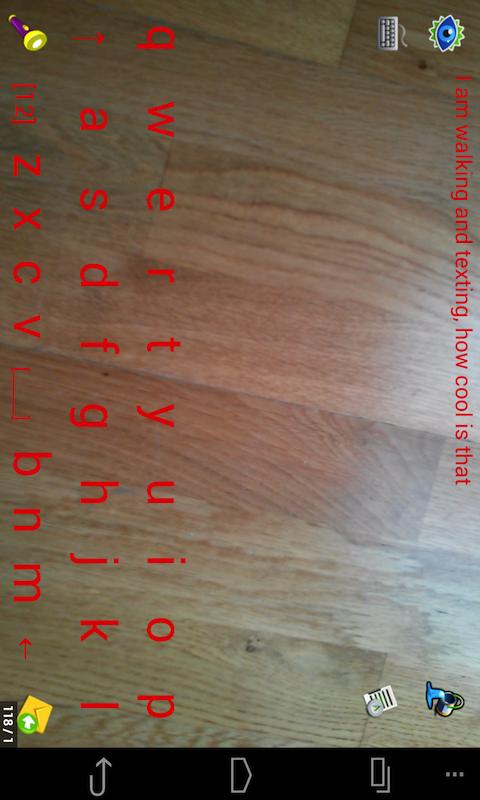 Walk and text freely with a transparent screen- see what is going on in front of you with the help of your back camera. Write text messages or notes and share them with any social network, message app or email client on the device or simply browse the net while walking.