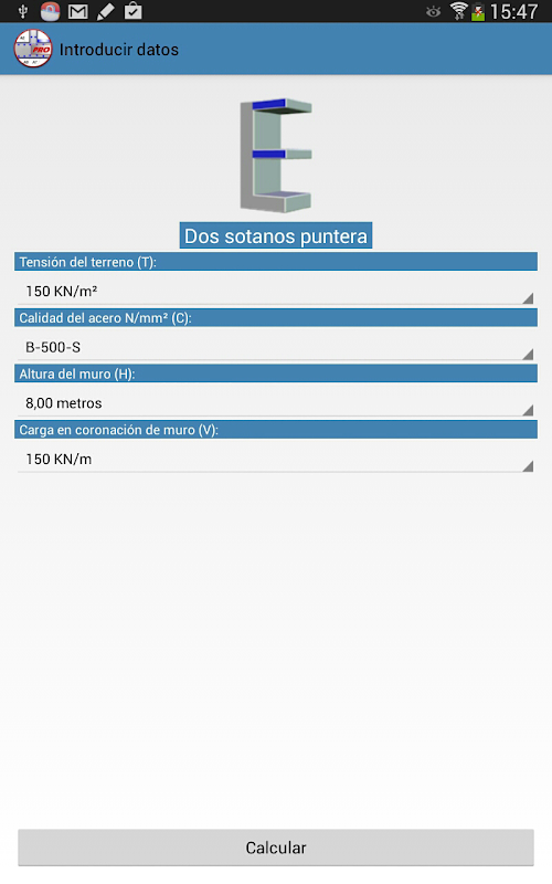 This application has been created to be an aid of the different people involved in the development of a particular construction. For its extreme simplicity, this application, can be handled by anyone with a basic knowledge of construction, but we recommend that it should only be used by people with enough technical calculation knowledge to know how to interpret the results.