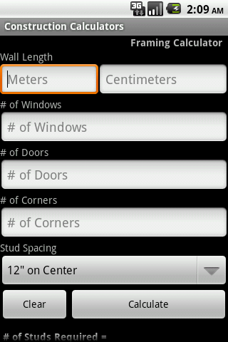 The highly acclaimed Android construction calculators and estimators from the app "Handy Construction Calculators" are being released individually in a Pro Select series. These calculators are tried and true, and have been used by over 15,000 Android users. By releasing the Pro Select series, you are now able to simply buy only the construction calculator you are most interested in at a value price. Of course if you want the whole set of over 70 calculators, please search for "Handy Construction Calculators" in the Market.