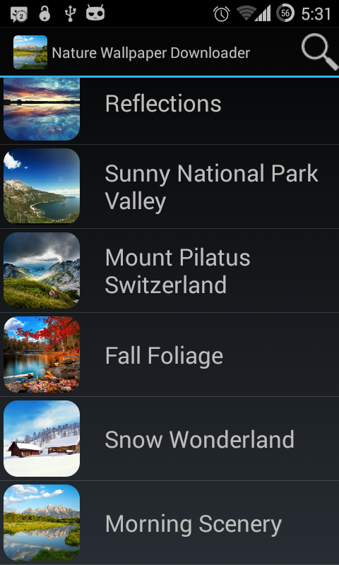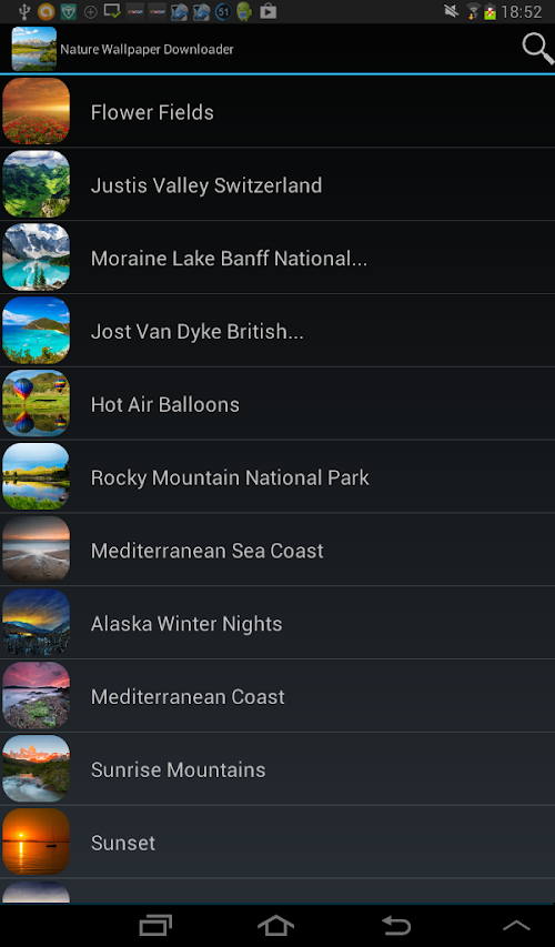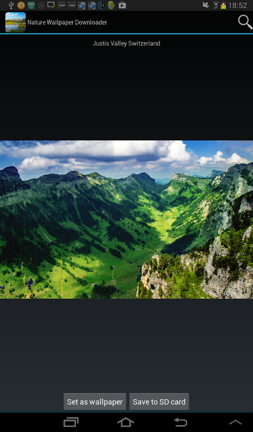 Wallpaper Downloader Nature HD is the simplest way of customizing your Android device's wallpaper with a nature theme. Just select a HD wallpaper you like from our list, apply it, and you're done! You can also save it to your SD to use later.