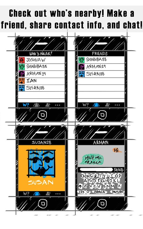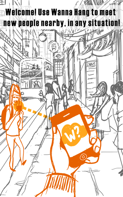 Wanna Hang removes angst and complication from first time social encounters and enables users to introduce themselves right from their own smartphone. Say you're in a coffee shop and you see a girl you want to introduce yourself to. But, she's with a group of other people. And worse, they seem really busy. And people all around you are watching. That's a problem. The solution? Open Wanna Hang, stand in a spot where you can see this special someone and you'll see her profile photo, screen name, age and a tweet's worth of information about her in the app. A simple click and she'll see your limited profile. If she likes what she sees, she'll accept your request to connect, and you'll see her profile and contact info. You can even chat through Wanna Hang. Nobody knows but you and her. That's a problem, solved. Girls - same thing works for you. See a guy you're in to but can't go over because everyone is watching? No problem. Just open Wanna Hang and let him find your connection request.