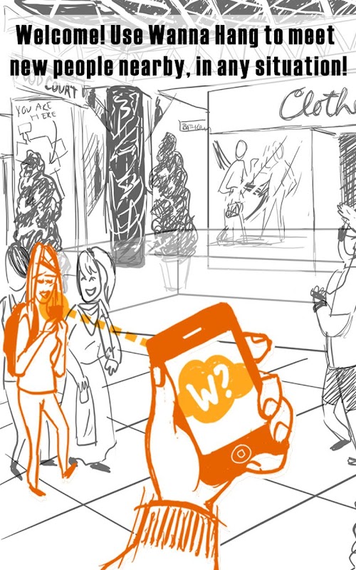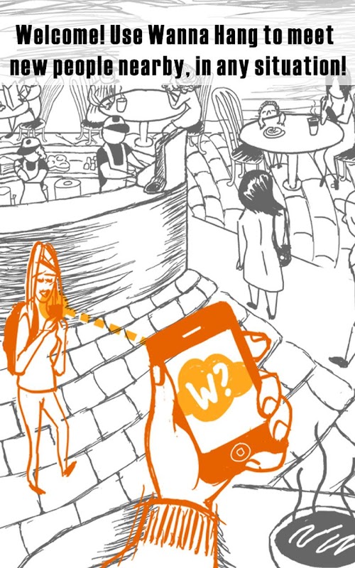 Simple. Download Wanna Hang, set up your profile and start connecting with other users. Wanna Hang enables you to start interacting with people you want to hang out with and get to know, but you can only send them an invitation to connect when you're in eyesight range of the other person. If you can see the person in real life, then you can see the person in Wanna Hang.