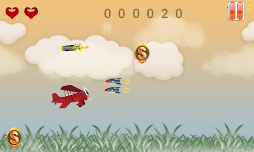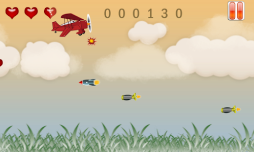 Be the war hero, and fly this plane properly to the war land, without being hit by the deadly rockets. Tap on the screen to make the plane fly up. When you press on the screen Plane moves up, and when you leave, it comes down. Use this war technique to dodge the enemy rockets and missiles and win this war. You get three lives. You are hit three times by the rockets and missiles, and you are down!!! But thanks for a very useful war land protection. You get magical war shield for the Plane, which covers the whole Plane in it, to safe guard him from being hit by rockets and missiles in the war land.
