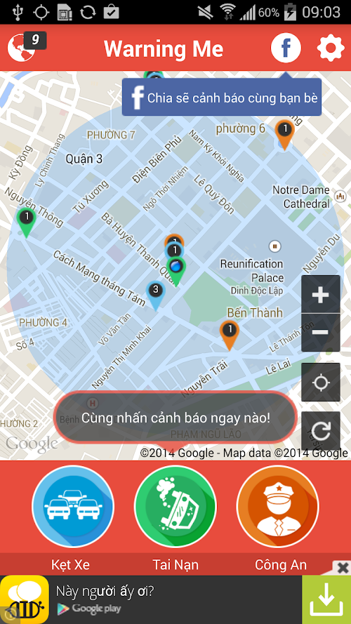 canhbao, giaothong ,vovgiaothongWarning Me is the app to share information about the road under traffic jams, accidents. All information is shared by the users and warn each other.