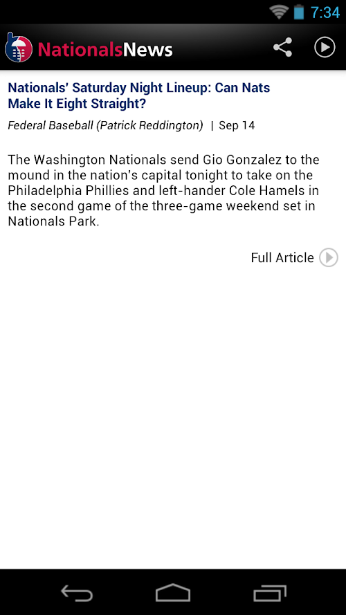 Hey Washington Nationals fans! Stay in the know on your favorite football team with Washington Baseball News - the premier Washington Nationals news aggregator for Android. Features include: