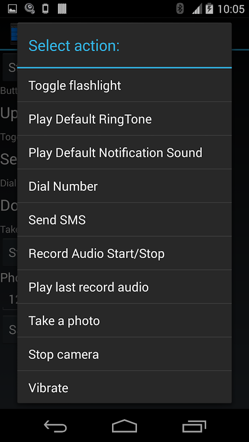 2. Touch the button on your Phone screen which you want to config, then select the action