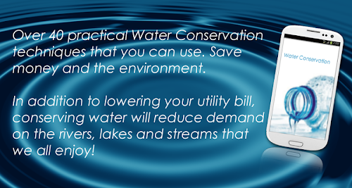 Welcome to the Water Conservation App. We hope everyone downloads this app. Water conservation has become an essential practice in all regions, even in areas where water seems abundant. In addition to saving money on your utility bill, water conservation helps prevent water pollution in nearby lakes, rivers and local watersheds.
