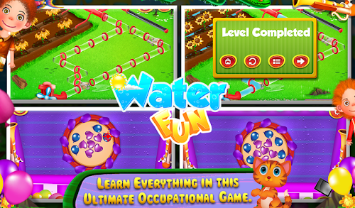 Many activities included inside the game like Fish Catching, Fill the bucket with water, fix the broken water pipes in garden, fill the jug with water, and crush the balloons filled with water, through the balloons and more, Players have to finish all the activities with carefully and finish each level very as quickly.