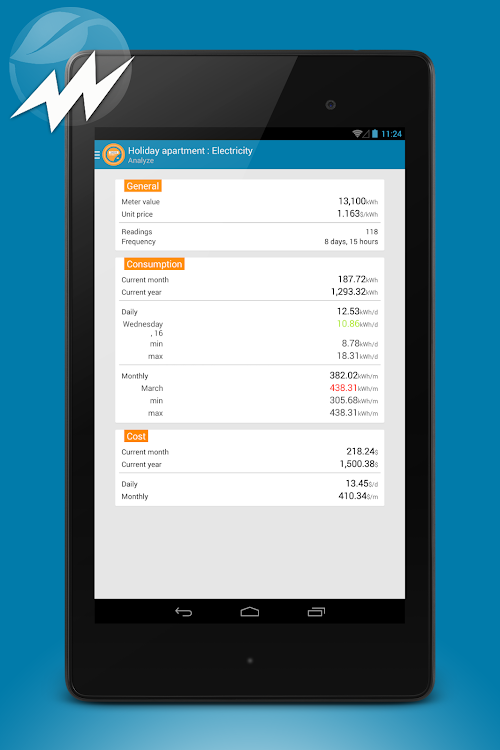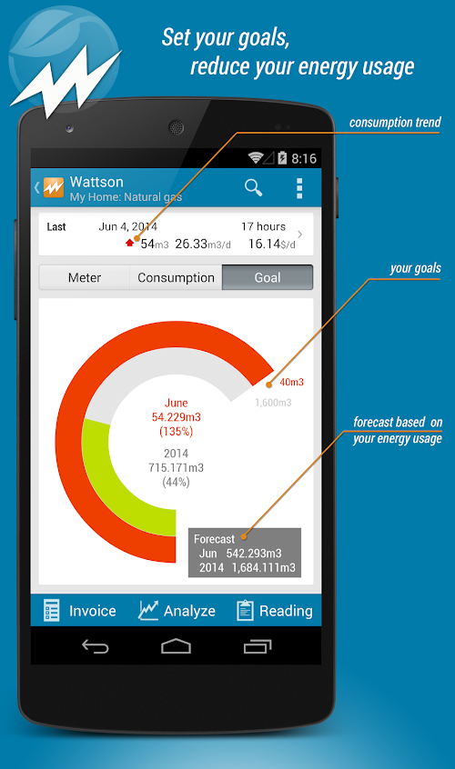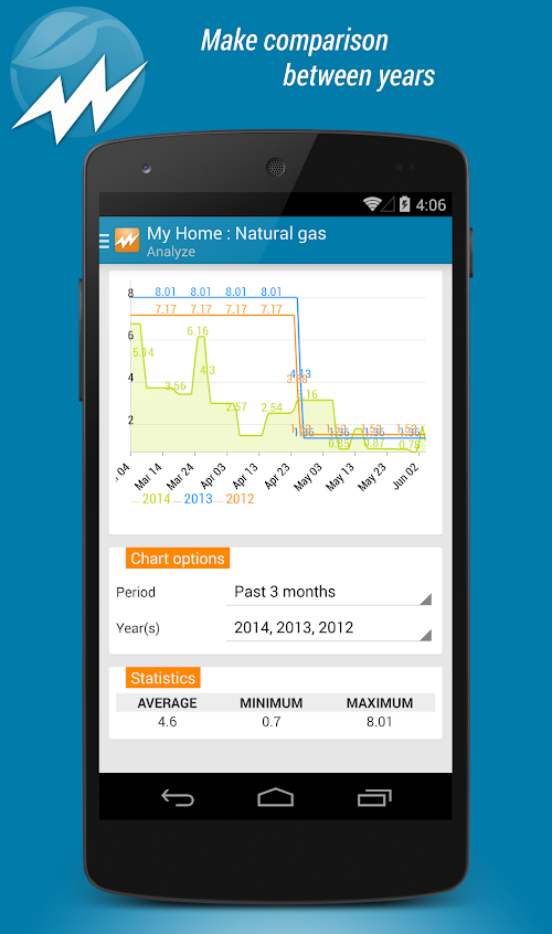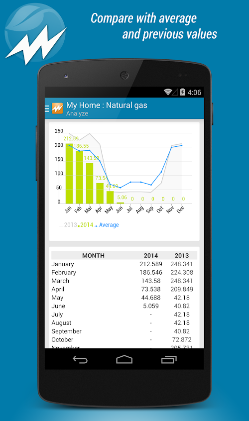 For this, just record your meter readings regularly and the application performs all the calculations for you. It will highlight the consumption increase or decrease in quantity and cost.