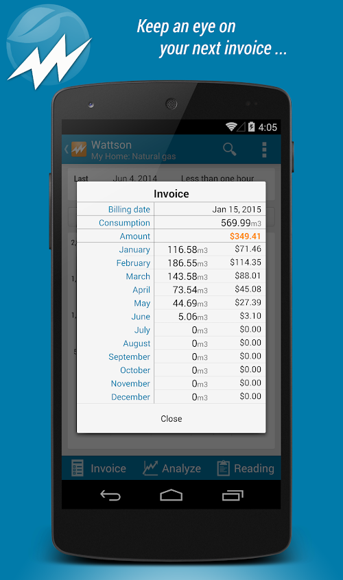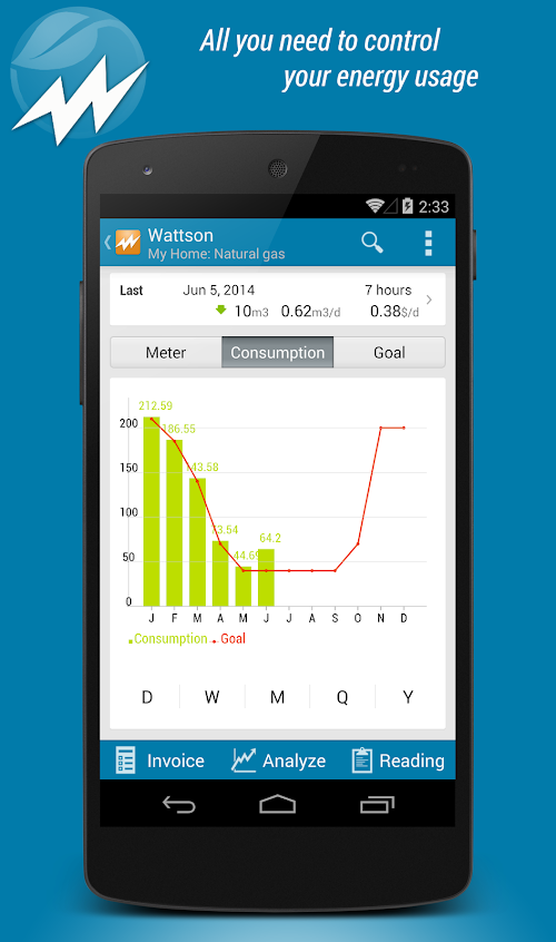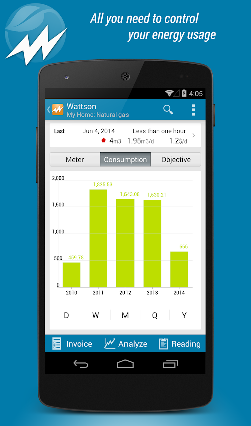 - Monitor your daily consumption, weekly, monthly, quarterly or annual