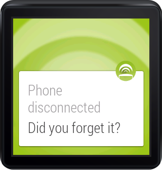 - Get a contextual notification on your wearable device when your phone is out of range. Never forget it on the table again!