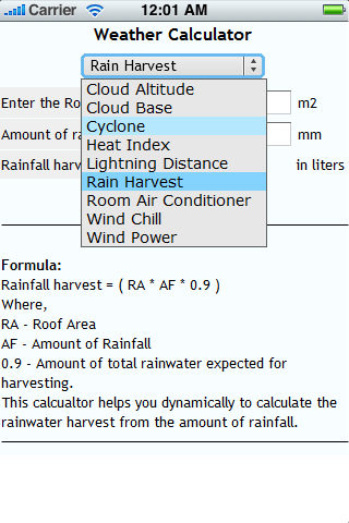 This app consists of 9 simple, weather-related calculators. The calculators include: