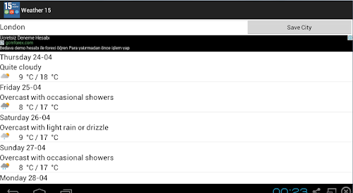 **You can use "Save the City" button for shortcut of your city. When you save the city that you want to see its 15 days weather results, app will automatically show the 15 days weather for the city in next usages.