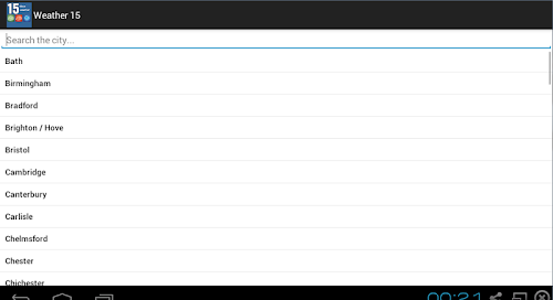 **15 days weather forecast app for England, Scotland, Ireland and Wales, requires to have internet access for using actual weather data.