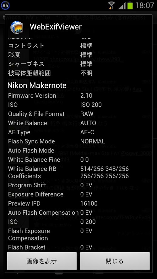 - Directly shows exifs on image sharing services(YFrog, Photozou, Hatena Fotolife, Panomino)