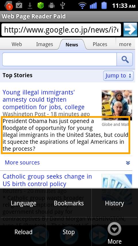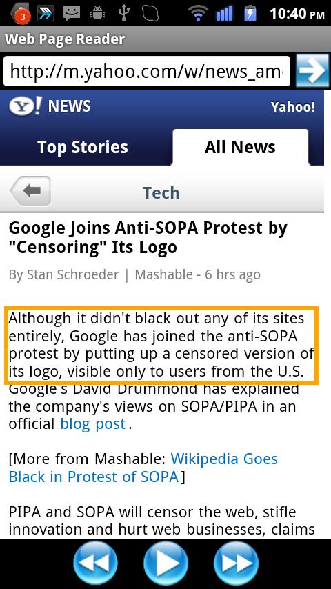 The browser reads the web page by Text-to-Speech(TTS) voice.
