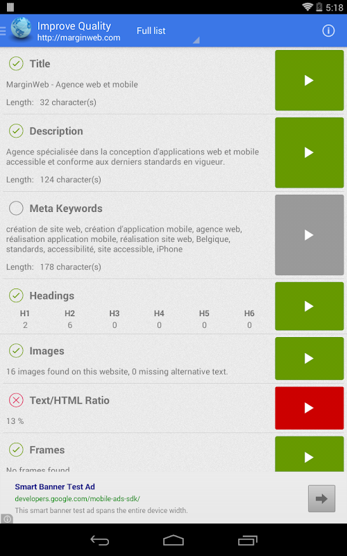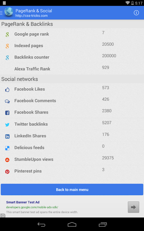 This application is a must have for all website owner that wants to keep tracks of their online presence. Check your Google ranking, your audience in social media and improve the performances of your website in just a few clicks!