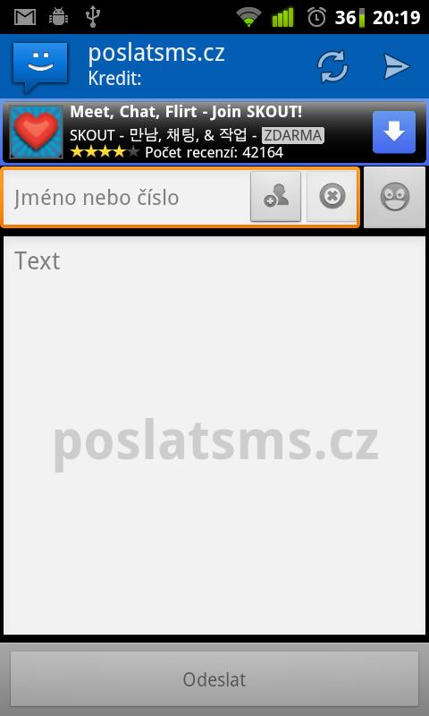 Send free SMS within Czech Republic to O2, T-Mobile and Vodafone via poslatsms.cz as registered or unregistered user. Please install WebSMS to use this connector.