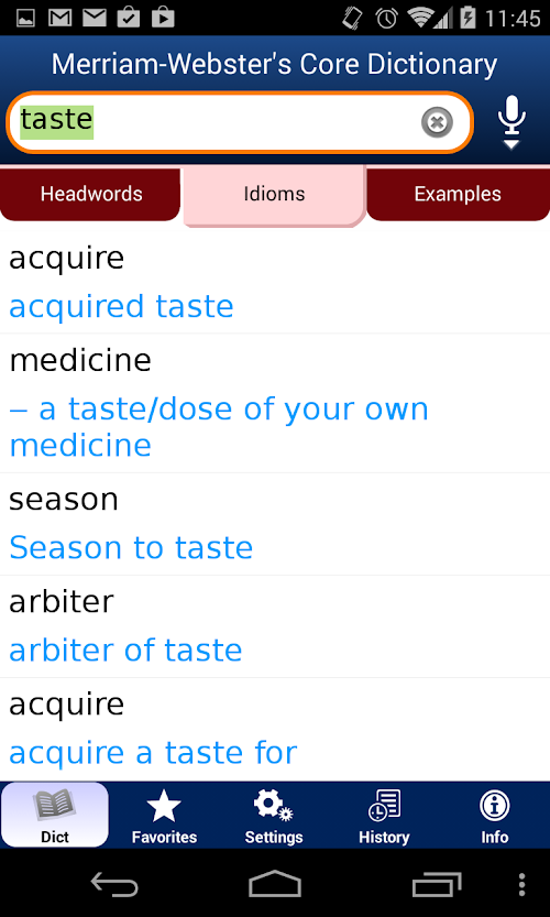• Convenient search feature allows you to look up words more efficiently throughout the whole dictionary content, including headwords, usage examples and idioms.