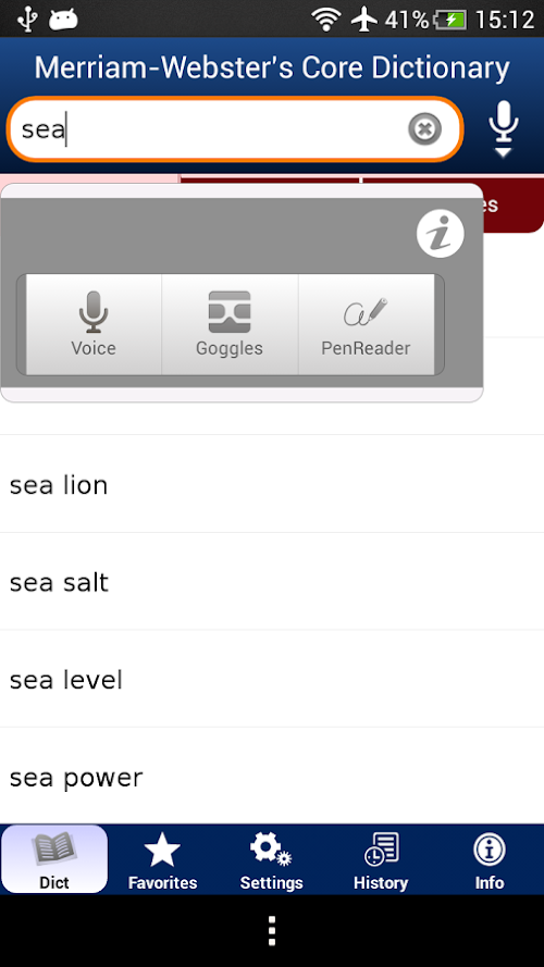 • Three input methods make dictionary word look-ups more convenient than ever. Search by voice with Google Voice recognition service, take a picture of text and translate it with Google Goggles, or enter the word with your own handwriting using Paragon's PenReader handwriting recognition technology..