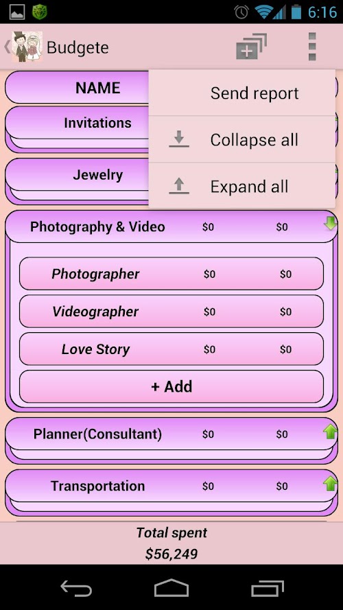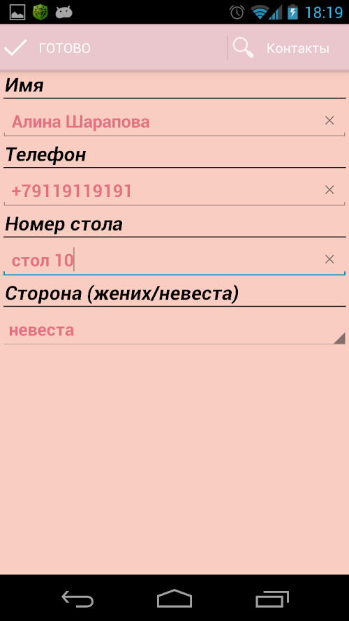 The application already has a ready-made list of costs and cases, and you can easily add something that is not found or remove something that is not necessary. You can also easily send information to email from the application. In addition, when working with the application you can easily call your assistant or the guest directly from the application.