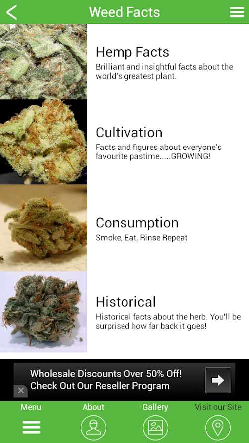 Now you can browse fantastic facts about Cannabis with this clean, easy on the eye and easy to use weed smokers info app.