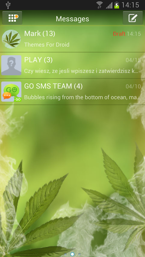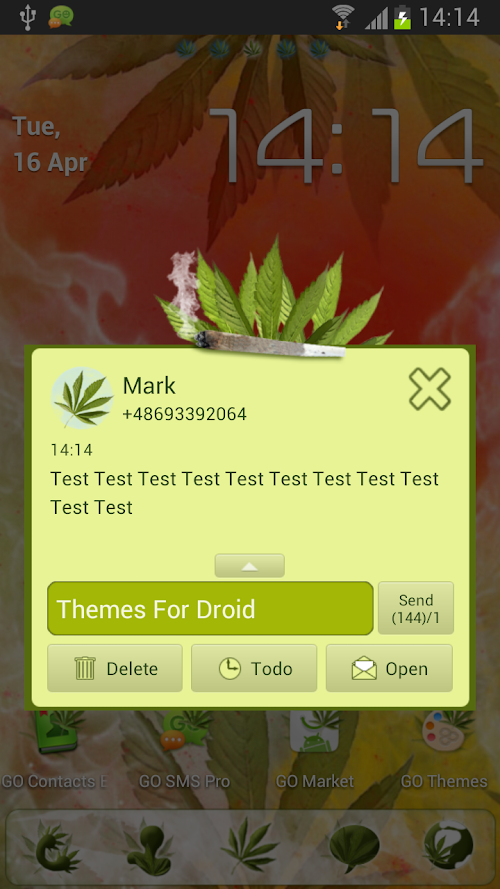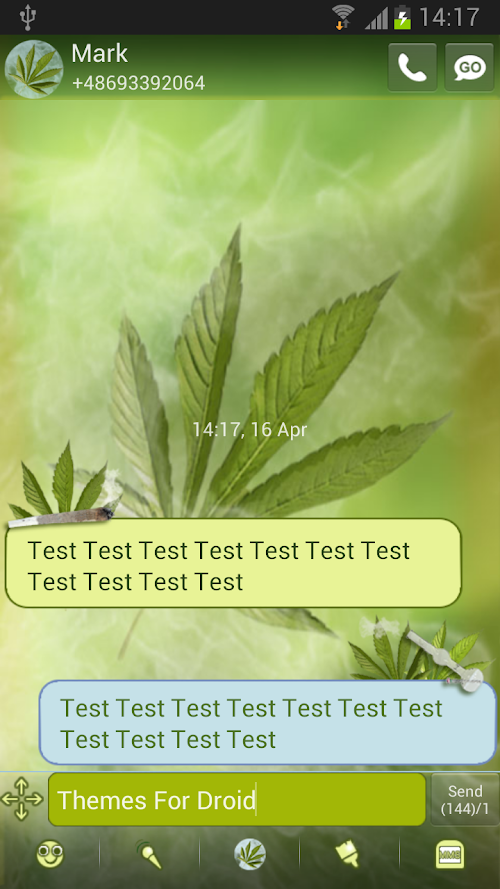This version of Weed Ganja Theme for GO SMS Android App comes with one universal variant which will work on all the Android devices.