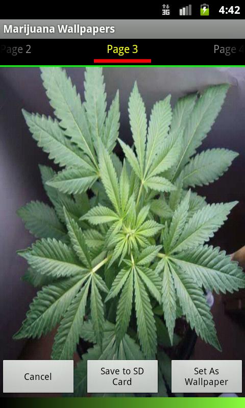 Do you like weed?  Or at least pictures of weed?  Well we've got 'em.  In stunning high quality for your phone, this app gives you complete freedom over what you would like to do with the pictures. Say you saw some pot and want to set a picture as a wallpaper? No problem just click the button.  Want to save them to your SD card?  You can do that too!  No longer be tied down to how you use your Weed apps.