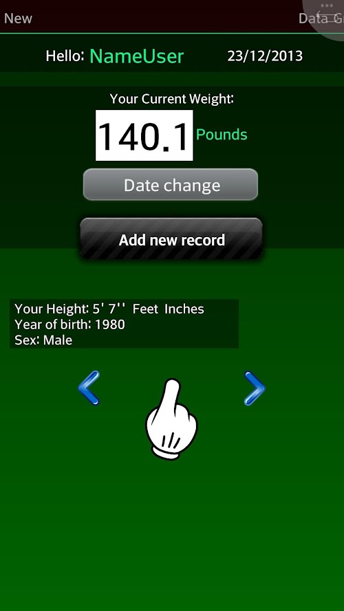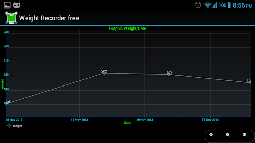 Keep track of your progress to achieve or maintain their weight. Also you can see the progress in various charts.