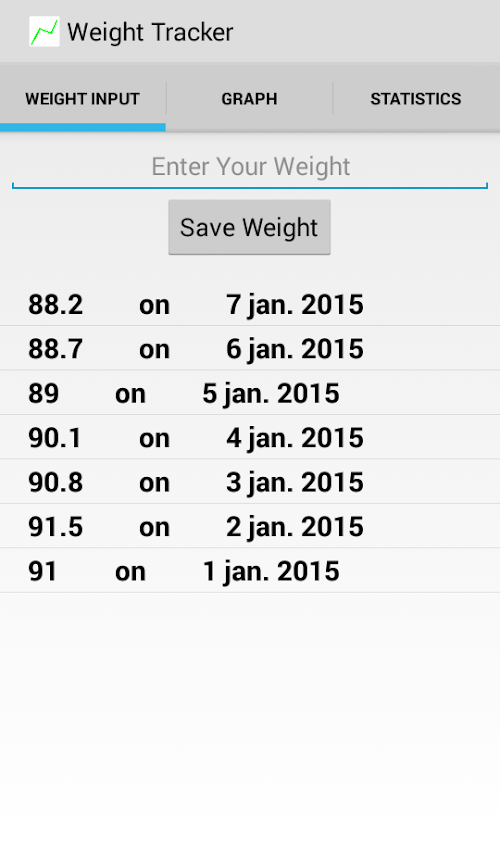 Enter your weight daily. with the graph view, you can instantly see your progress in a line graph. in statistics, you can see your results in recent days and weeks, and immediately your total weight loss.