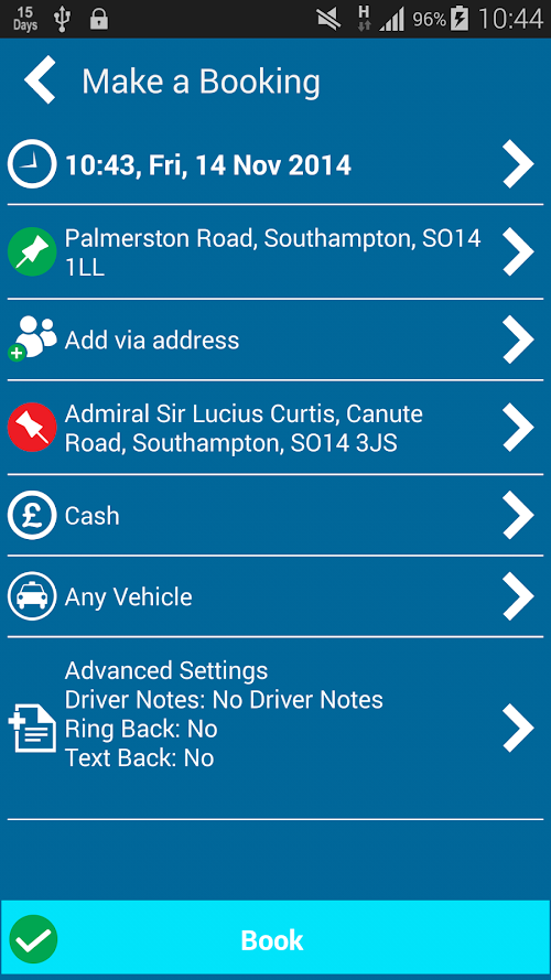 This app has been designed to be used for taxi journeys in the Southampton area.