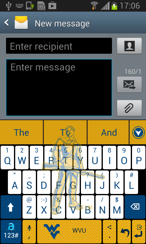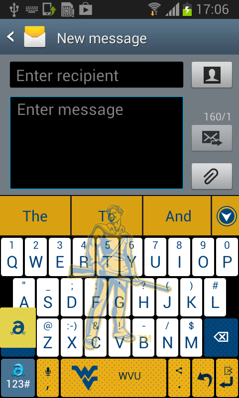 *Graphically rich Old Gold and Blue theme keyboard with the WVU logo