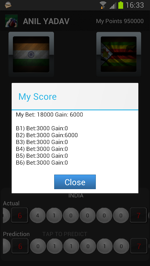 Cricket prediction game “What an Over” is a simple cricket game for your smart phone but smartly devised to raise your anxiety and excitement during a live cricket match. Play now all or any of the overs or balls bowled in an international cricket match. With the start of every match and also as the match progresses, you can play each over, ball by ball, to predict the outcome. For every correct prediction, you score points based on initial bet and the outcome. Points are awarded based on statistical result analysis. Each betting opportunity is multiplied with odds resulting variable. Higher the bet and lower the chances of an outcome, higher the points awarded on correct result. You can compare your prediction ball by ball with live cricket score.