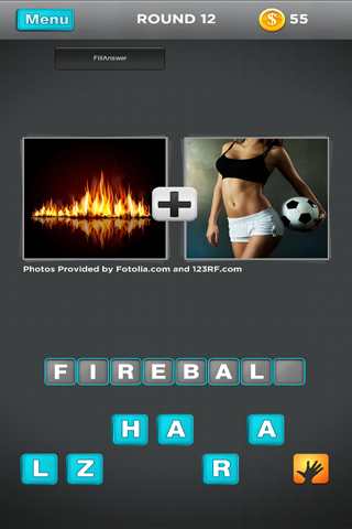 Each puzzle contains two pictures of two different words but when you join them , BANG ! you get ONE WORD !!! ( eg : RAIN + BOW = RAINBOW)