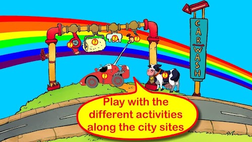 - The child can chose to visit different locations around town (i.e. car wash, playground and more) and play with the different activities in each location.