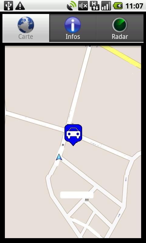 * A radar to show the direction to follow to reach your car and the distance to it. (Calculation is based on the magnetic sensor of your phone).