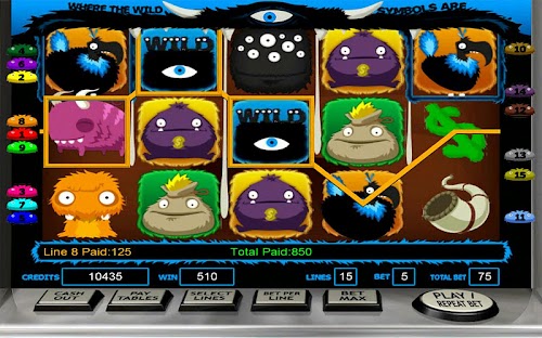 This slot machine features a Monster Respin where all wilds lock in place and the remaining symbols spin again. If at least one more symbol matches, it will lock and respin again and again. Watch for monster jackpots.